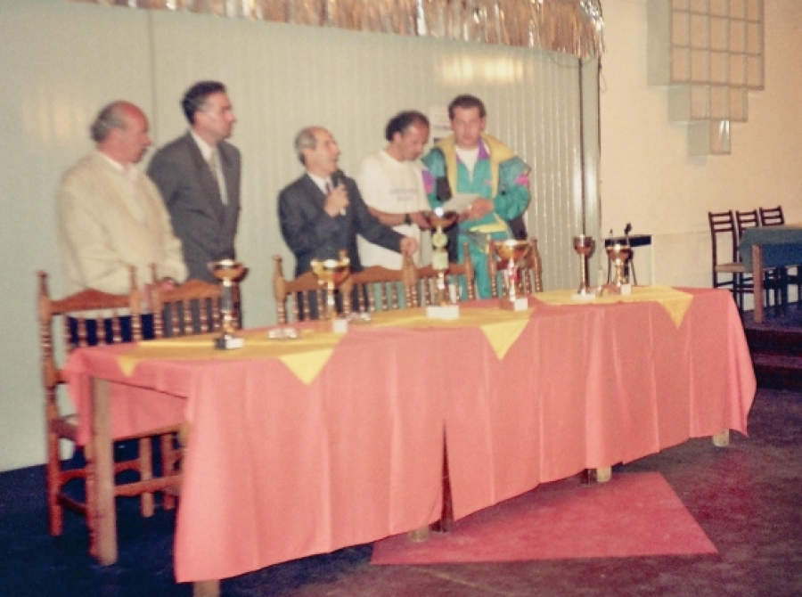 **στην φωτο ο Κος Μ. Χαρατσάρης απονέμει κύπελλα και αναμνηστικά διλώματα σε Αθλητές Αλεξιπτώτου Πλαγιάς σε Αεραθλητική Εκδήλωση το 1993.