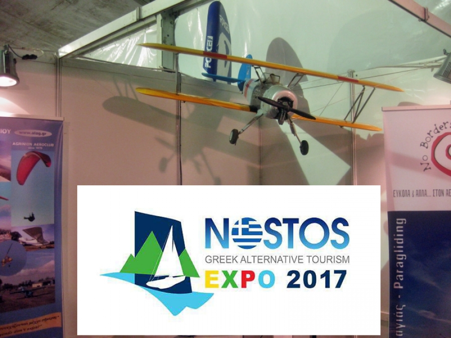 Η έκθεση NOSTOS 2017 έγινε για δεύτερη συνεχή χρονιά στην Ναύπακτο και αποτελεί την πρώτη ολοκληρωμένη προσπάθεια ανάδειξης και προβολής του Εναλλακτικού Τουρισμού (Ε.Τ.) στην Ελλάδα. Ο Δήμος Αγρινίου έχοντας καλέσει φορείς και συλλόγους Ε.Τ. της περιοχής μας, παρουσίασε ένα αρκετά μεγάλο και όμορφο περίπτερο το οποίο μάλιστα βρισκόταν στην είσοδο του χώρου και ομολογουμένως έκανε αίσθηση. Ενας από τους συλλόγους που συμμετείχε στο περίπτερο αυτό ήταν και η Αερολέσχη Αγρινίου. Το εκθεσιακό υλικό της λέσχης περιείχε ένα Αερομοντέλο διπλάνο (κρεμασμένο στον χώρο του περιπτέρου) , ένα μπάνερ, βίντεο με δραστηριότητες της λέσχης, φυλλάδια και κάρτες. Το τμήμα Αλεξιπτώτου Πλαγιάς εκπροσωπήθηκε από την σχολή «No Borders” η οποία είχε στο περίπτερο ένα paramotor (το οποίο εκτέλεσε και πτήση το Σαββατο), βίντεο από δράσεις της σχολής, μπάνερ, φυλλάδια και κάρτες. Ο πρόεδρος της λέσχης κος Σβόλης Αθανάσιος και ο ιδιοκτήτης της σχολής «No Borders” Ιωακείμ Σκόνδρας, μίλησαν για τις προοπτικές του Αεραθλητισμού στον Εναλλακτικό τουρισμό στην Αιτωλοακαρνανία, στην δημοσιογράφο Χρύσα Σπαή και το AgrinioBestOf.gr