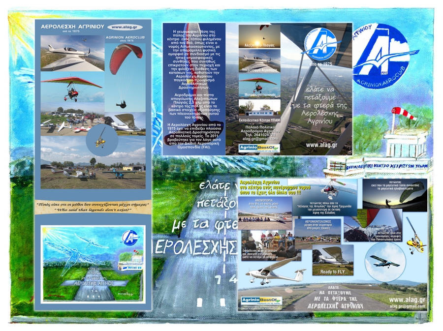 Εσωτερικά το φυλλάδιο έχει σαν κεντρικό μότο το μήνυμα «Αερολέσχη Αγρινίου. Στο κέντρο ενός πανέμορφου νομού όπου τα έχεις όλα δίπλα σου» και παρουσιάζονται φωτογραφίες με δράσεις της λέσχης σε διάφορους χώρους και με περιγραφές όπως :