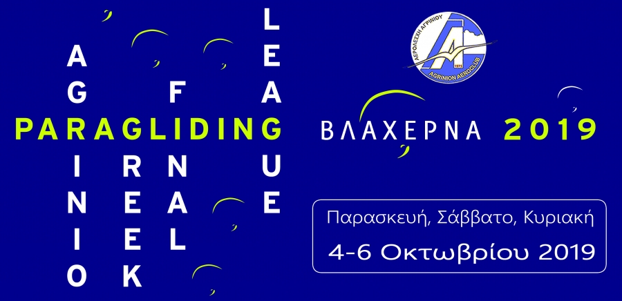 Στο Αγρίνιο και συγκεκριμένα στην πίστα της Παναγίας Βλαχέρνας θα πραγματοποιηθεί το τριήμερο (Παρ 4 - Σαβ 5 - Κυρ 6/10/2019) η τελευταία αγωνιστική του Πανελλήνιου αγώνα αποστάσεων (Λίγκα) Αλεξιπτώτου Πλαγιάς.